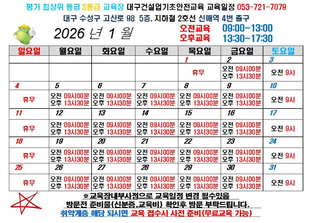 대구 건설기초안전교육 무료교육 안내